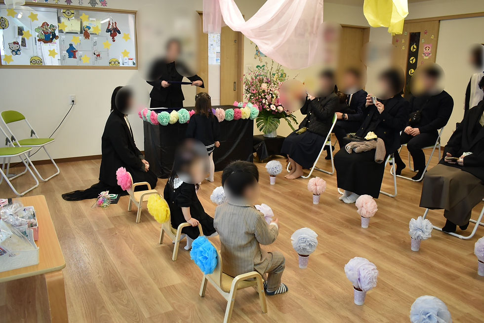 卒園児さんは3名。少し緊張しながら、前に出て静かにお話しを聞いてくれました✨