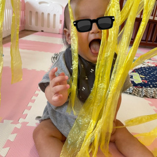 こもも🍑さんは、すずらんテープのカーテンでいないいないばあっ!をしていました😆💗