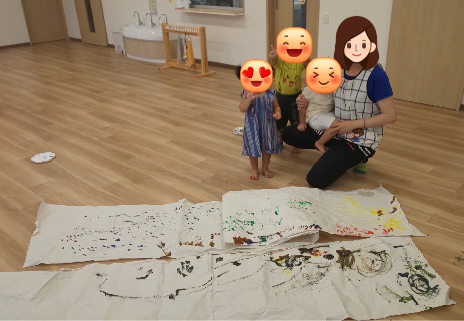 お歌や運動を楽しんだ後は、絵の具を使ってお絵描きをしました🎨