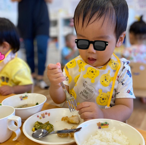 こもも🍑さんは皆で並んで、ひと足さきに給食🍴
