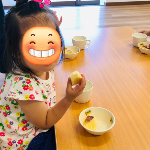 おひるね後のオヤツは、手作りのチーズ蒸しぱんです🍞